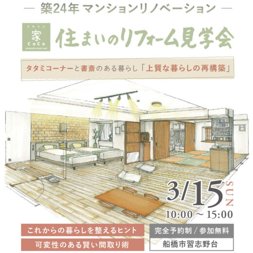 【家CoCo】3/15(日)船橋市│築24年マンションリノベーション│タタミコー...