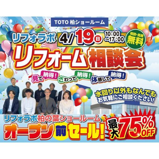 【リフォラボ柏の葉】4/19(日)TOTO柏ショールームリフォーム相談会...