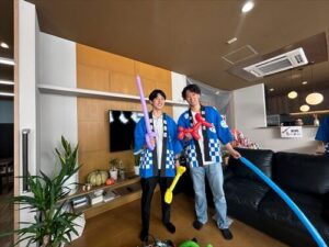 バルーンアートでは、剣を手にした男の子がにこにこ笑顔
