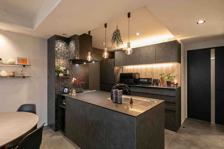 対面壁を可能な限りなくし、開放的なキッチンへ