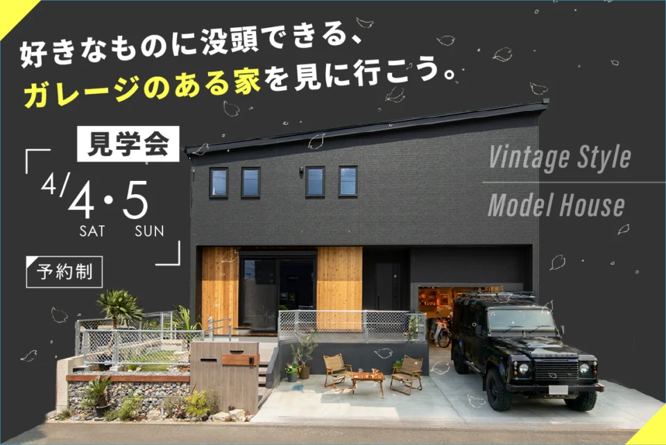 クルマやバイク、アウトドアギアを楽しみながら、自分らしい時間を心地よく過ごせるガレージハウス。そんな理想の暮らしを体感できる【2日間限定】の見学イベントを開催します。